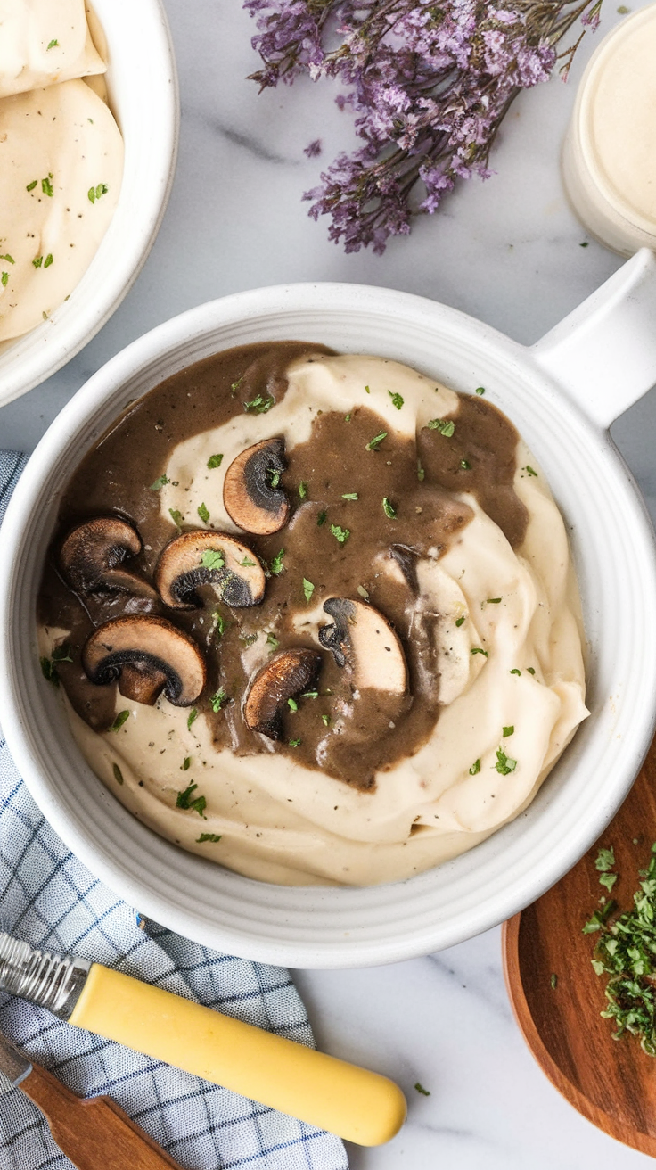 - Enhance Flavor with Herbs: Fresh rosemary and thyme are key to this recipe’s aromatic and cozy flavor. Don’t skip these herbs, as they elevate the savory taste of the mushroom gravy.